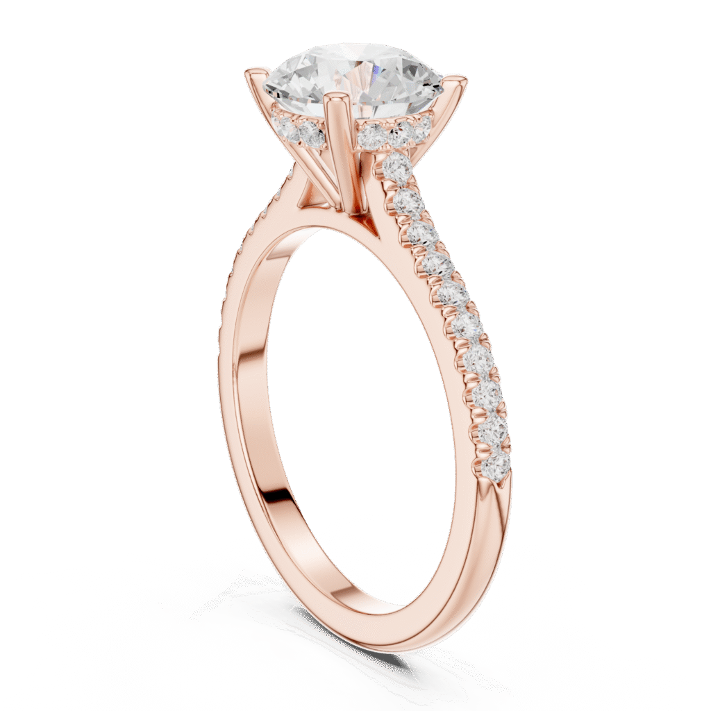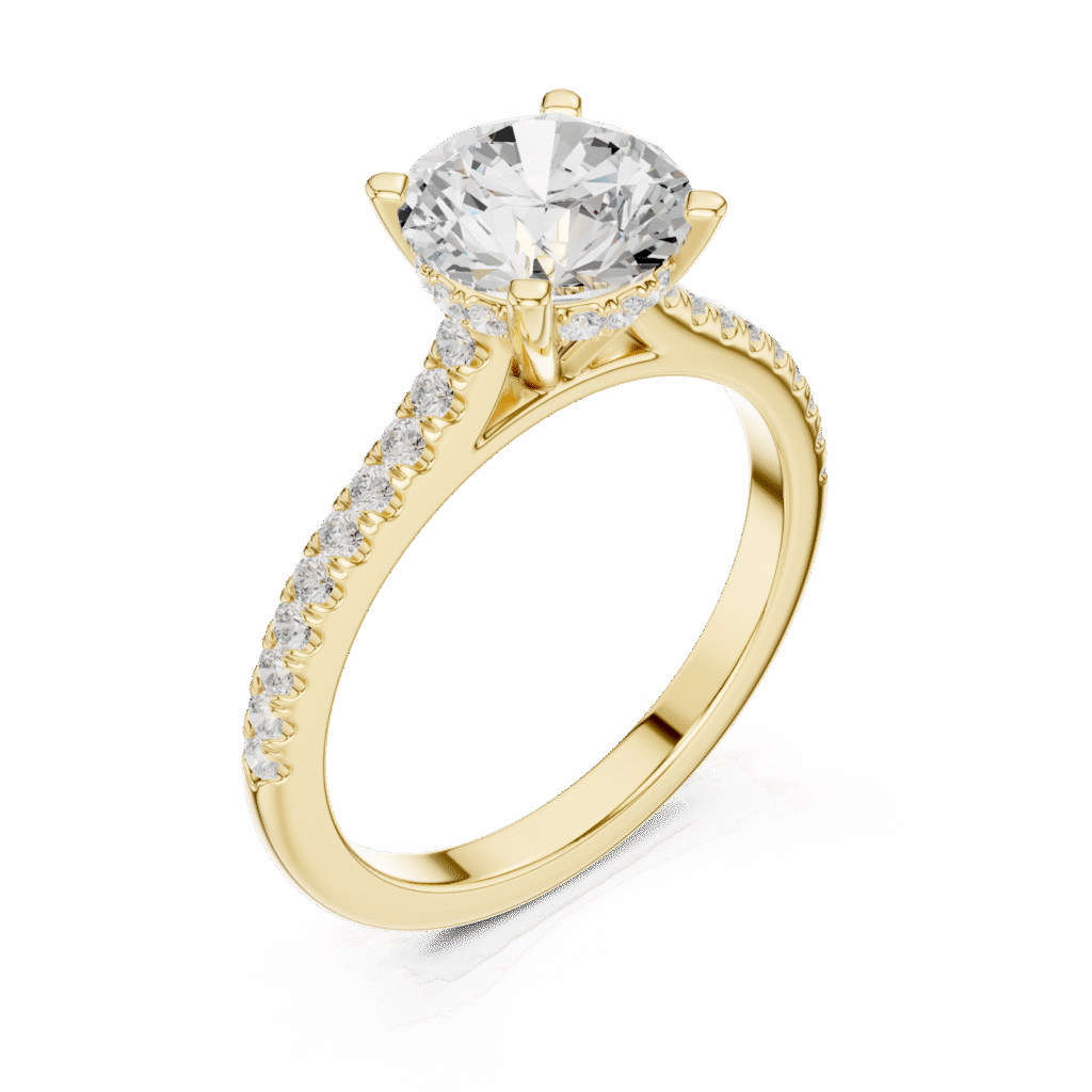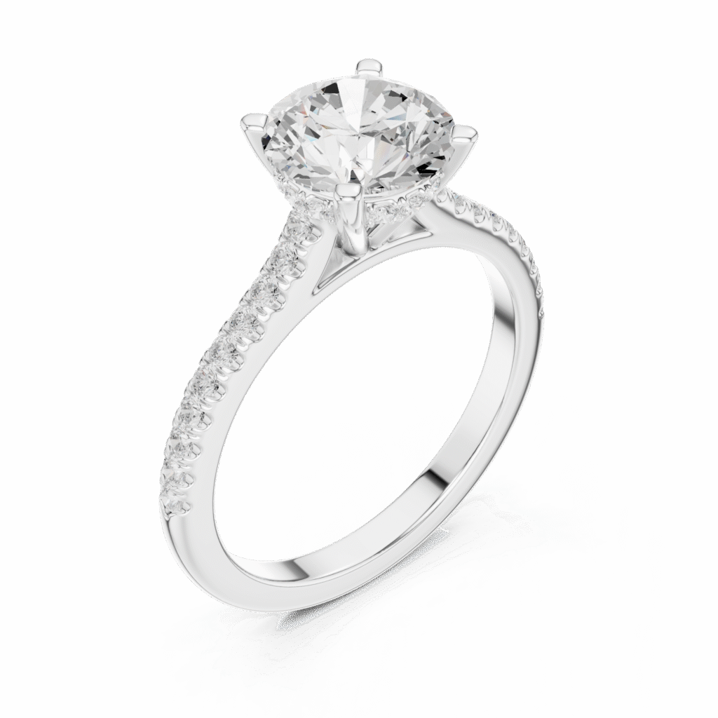A timeless lab grown diamond ring featuring a brilliant round solitaire elevated by a hidden halo for added sparkle. Handcrafted to perfection, this elegant piece blends modern luxury with ethical craftsmanship — a radiant symbol of love designed for the woman who values beauty, brilliance, and sustainability.